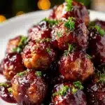 Juicy, tender meatballs simmered in a tangy-sweet cranberry glaze. The perfect festive appetizer or party dish for the holidays.