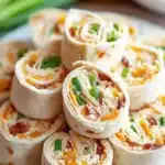 What makes these pinwheels so irresistible is the combination of flavors and texture. The creamy mixture of softened cream cheese, shredded chicken, tangy ranch seasoning and sharp cheddar creates a rich base that pairs perfectly with the crisp, smoky bacon and fresh green onions. Rolled tightly in soft tortillas, each slice delivers the ideal blend of savory, salty, creamy and crunchy. They taste indulgent yet balanced. They look impressive yet require almost no cooking. It is no wonder they are extremely popular for Finger Foods Appetizer Recipes, Party Snacks Finger Foods, and Yummy Appetizers for gatherings.