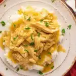 - Shred the Chicken: Remove chicken, shred it with two forks, then return it to the gravy and stir until combined.