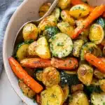 Golden roasted potatoes, tender carrots, and zucchini tossed in olive oil, garlic, and herbs; a flavorful, simple side dish that pairs perfectly with any meal.