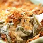 A rich and creamy green bean casserole loaded with flavor and topped with golden fried onions; the perfect comfort side for holidays or weeknights.