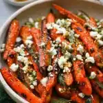 Sweet roasted carrots topped with salty feta and fresh dill for a simple yet elegant spring side dish.