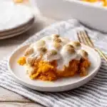This creamy sweet potato casserole topped with toasted marshmallows is a cozy holiday classic; sweet, buttery, and irresistibly nostalgic for Thanksgiving or Christmas dinner.